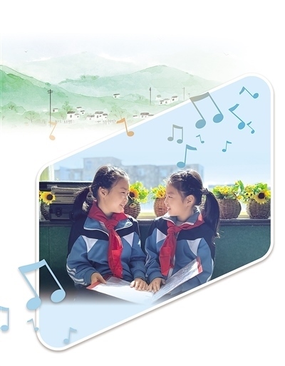 講臺上,隨著廖光新的雙手向前一打開,學(xué)生們齊刷刷地唱了起來?!敖裉焯鞖夂茫フ腋赂拢ㄍ馄牛﹪D……”稚嫩而清脆的聲音瞬間充滿整個教室,透過窗戶傳向遠(yuǎn)處的大山。