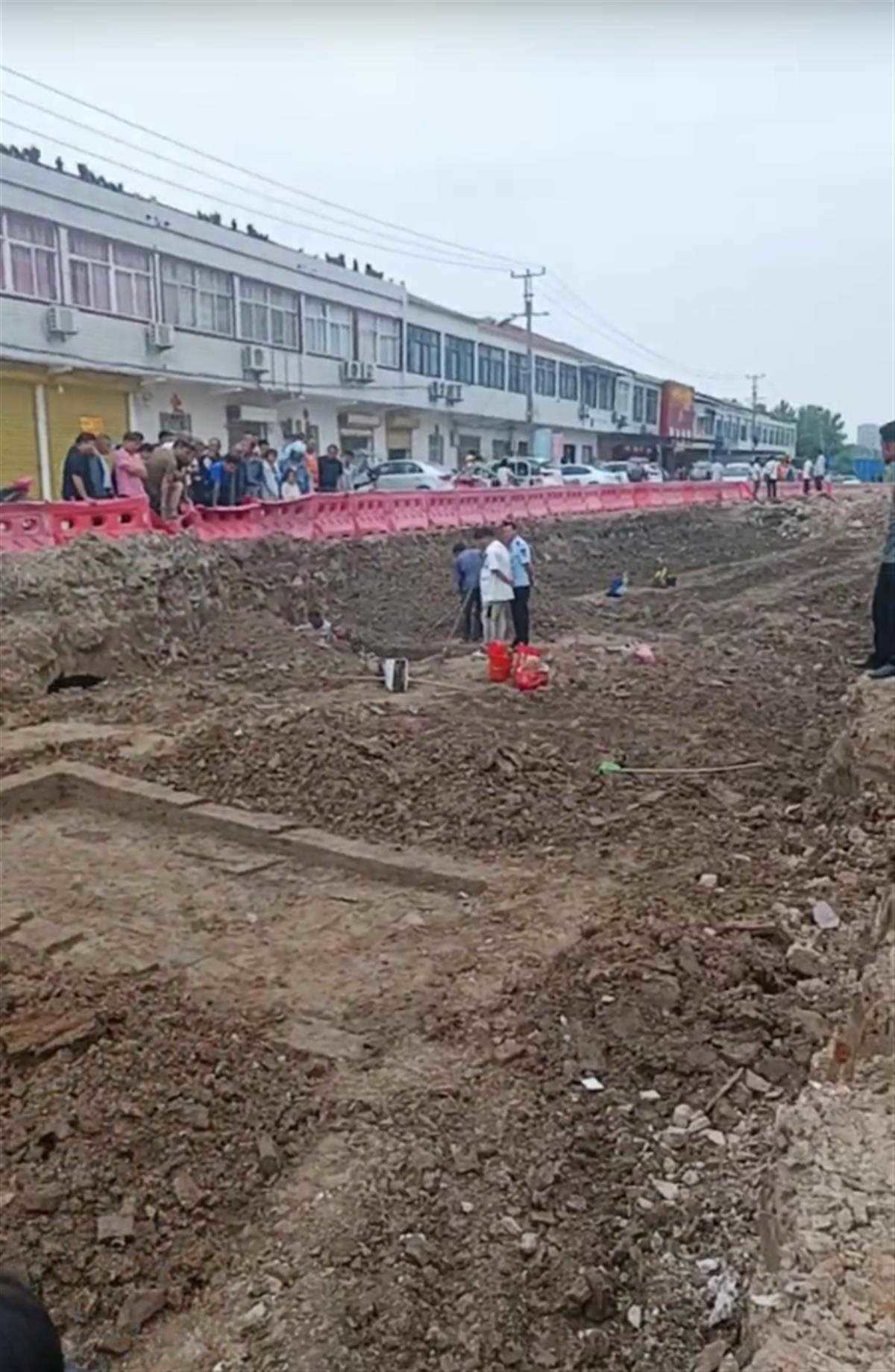 6月6日,事發(fā)現(xiàn)場附近一位商戶告訴極目新聞?dòng)浾?,發(fā)現(xiàn)古墓的地點(diǎn)是一處修路的工地,此前該地上方建了一排民房。去年,這排民房被拆除,準(zhǔn)備修建一條道路。6月5日,施工人員在這塊工地上施工時(shí),在地下發(fā)現(xiàn)了幾座古墓。隨后,民警和考古人員都到現(xiàn)場,對現(xiàn)場進(jìn)行保護(hù)和處置。到目前,考古人員已經(jīng)挖出三個(gè)罐子和兩面銅鏡。