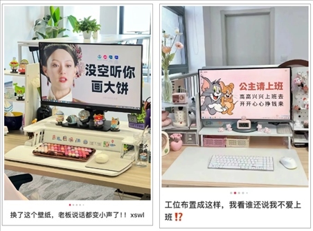 “沒空聽你畫大餅”“公主請(qǐng)開心上班”,調(diào)侃吐槽、加油鼓勁的電腦壁紙隨處可見。