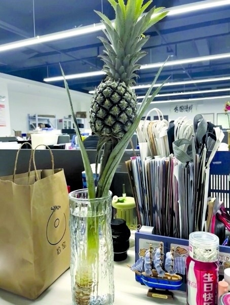 00后楊三日從事新媒體運(yùn)營(yíng)工作,她在工位上養(yǎng)了一個(gè)菠蘿,“養(yǎng)菠蘿是一件很酷的事情,不僅能觀賞,還能吃,很配我特立獨(dú)行的氣質(zhì)?!彼f自從養(yǎng)了菠蘿之后,每天上班時(shí)心情就變得非常好。“我的工位就像熱帶雨林一樣,提前進(jìn)入了春天?!?/p>