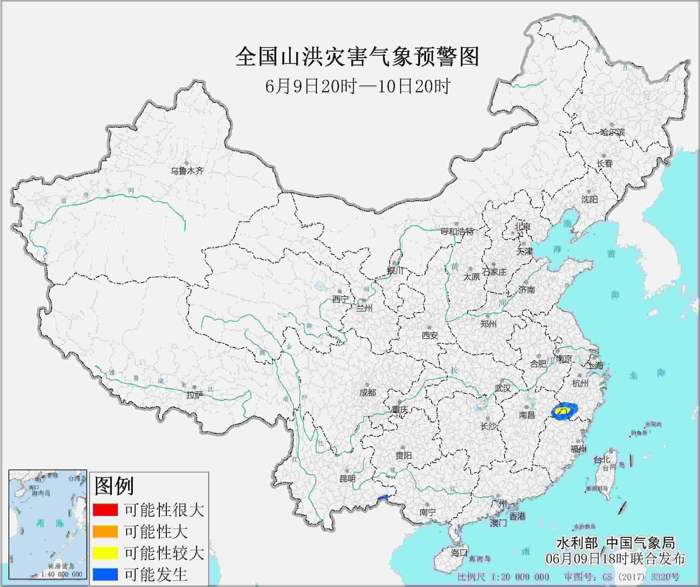 預(yù)計(jì),6月9日20時至10日20時,浙江西南部、福建北部、江西東北部、云南東南部等地部分地區(qū)可能發(fā)生山洪災(zāi)害(藍(lán)色預(yù)警),其中,浙江西南部、福建北部、江西東北部局地發(fā)生山洪災(zāi)害可能性較大(黃色預(yù)警)。其他地區(qū)也可能因局地短歷時強(qiáng)降水引發(fā)山洪災(zāi)害,請各地注意做好實(shí)時監(jiān)測、防汛預(yù)警和轉(zhuǎn)移避險(xiǎn)等防范工作。