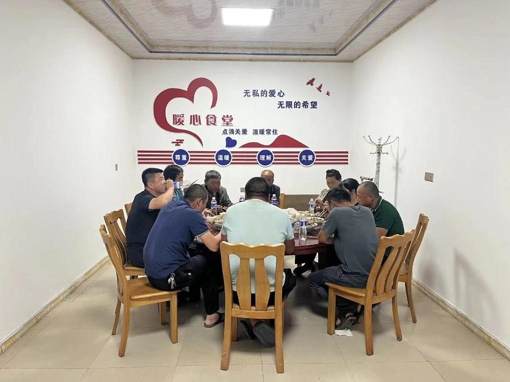在山東德州陵城區(qū)一家村級(jí)“幸福院”,工作了一天的農(nóng)機(jī)手們正在吃晚飯。(受訪(fǎng)者供圖)
