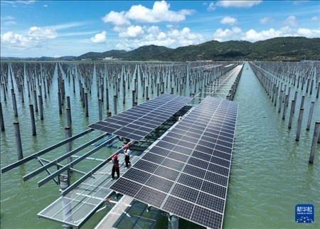 三峽集團(tuán)東山杏陳180MW海上光伏電站位于福建省東山縣杏陳鎮(zhèn)、前樓鎮(zhèn)海域,這里日照長、風(fēng)速大,屬于抗臺(tái)型潮汐帶海上光伏項(xiàng)目。該項(xiàng)目采用上部光伏發(fā)電與下部海域漁業(yè)養(yǎng)殖相結(jié)合的模式,實(shí)現(xiàn)海域立體綜合開發(fā)。