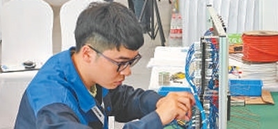 手持記號筆,目光如炬,只見軌道信號控制技術(shù)項目選手陳權(quán)(見圖,本報記者蔣雨師攝)在電路圖里精準(zhǔn)鎖定電路,將一個個接點(diǎn)逐一填入配線表,動作行云流水,一氣呵成。在大賽現(xiàn)場,軌道信號控制技術(shù)項目選手需要完成軌道信號設(shè)備的設(shè)計、施工、調(diào)試與檢修工作。就設(shè)計環(huán)節(jié)而言,選手們需要把上百條電路信號的轉(zhuǎn)轍機(jī)電路設(shè)計圖轉(zhuǎn)換為電路配線表,但凡有一個接點(diǎn)錯誤,整個電路都將出現(xiàn)問題,而這一環(huán)節(jié),陳權(quán)只花了10分鐘。