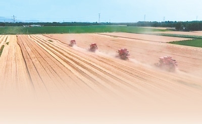 夏日的午后,陽光灑在昌黎縣安山鎮(zhèn)廣袤的麥田上,幾臺聯(lián)合收割機(jī)沿著筆直的麥浪線緩緩前進(jìn),所到之處,麥穗紛紛收割入桶,經(jīng)過內(nèi)部滾筒等設(shè)備的打碎脫粒,麥粒落入儲存箱……