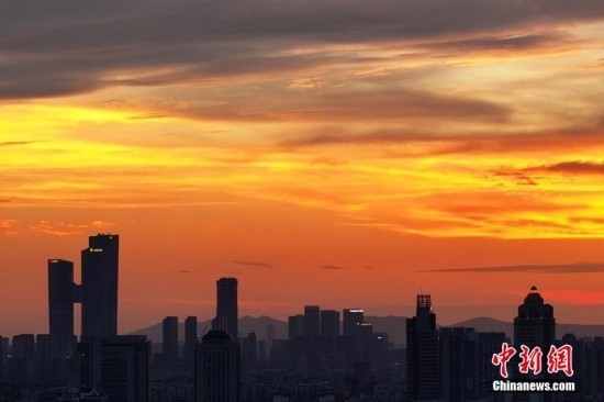 7月7日傍晚,南京上空漫天紅霞。近日,當(dāng)?shù)爻掷m(xù)高溫,同時“蒸”出晴好天氣。(無人機(jī)照片)