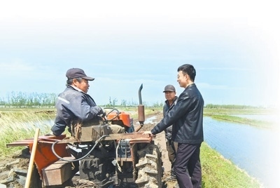 吉林省松原市寧江區(qū)毛都站鎮(zhèn)的田野上,一排排水稻秧苗青青,腳蹬膠靴、戴著眼鏡的支農(nóng)工作者汪宏宇蹲下身子,向村民講解水稻種植的技術(shù)細(xì)節(jié),仔細(xì)檢查著田里秧苗情況?!斑@都是前幾天剛栽種的水稻秧苗,長得挺硬實?!蓖艉暧钫f。