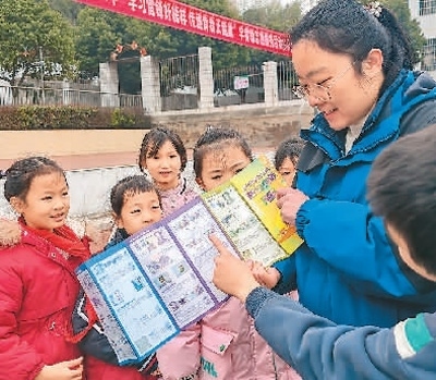 在湖南省江永縣實驗小學,該縣農商銀行工作人員為小學生宣講網絡金融知識。潘百旺攝(人民視覺)