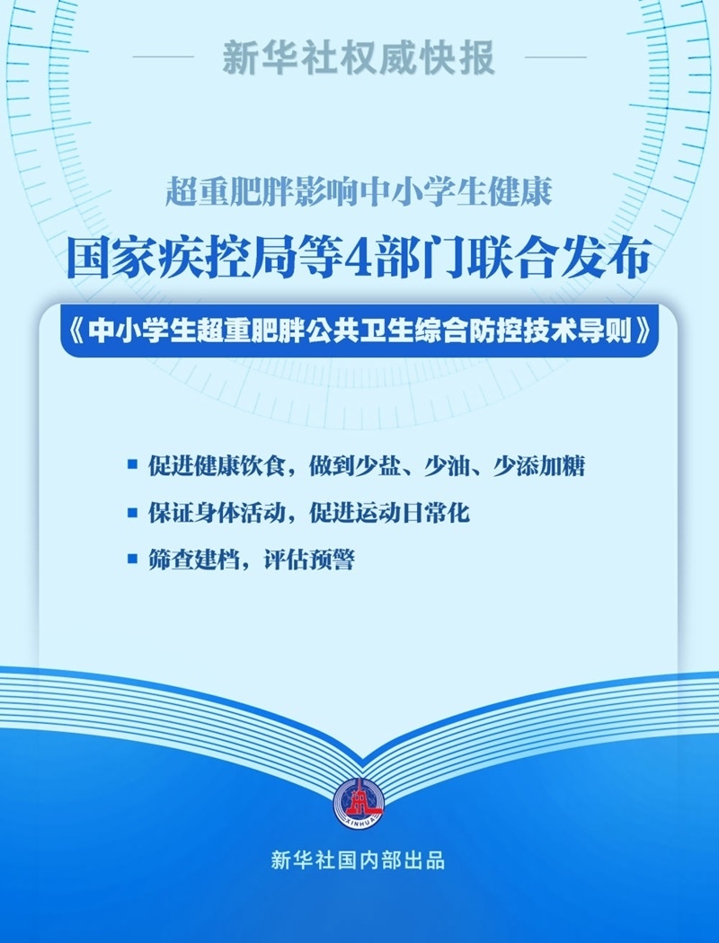 7月22日,國家疾控局、教育部、國家衛(wèi)生健康委和國家體育總局聯(lián)合發(fā)布《中小學(xué)生超重肥胖公共衛(wèi)生綜合防控技術(shù)導(dǎo)則》。