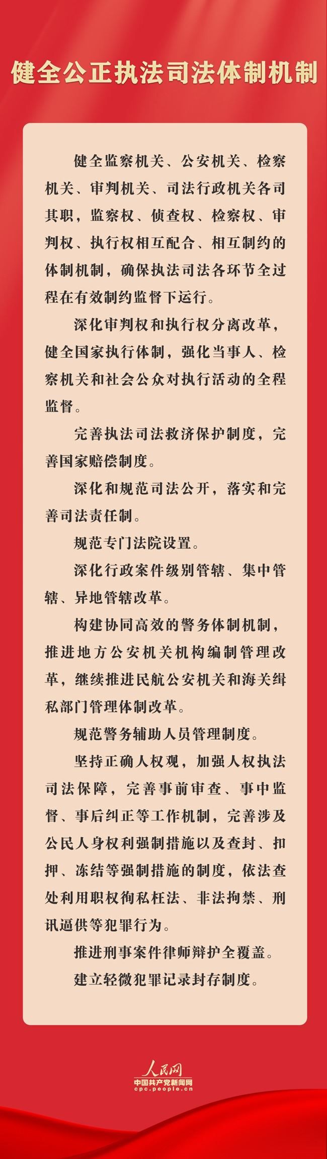 7月21日,《中共中央關(guān)于進(jìn)一步全面深化改革、推進(jìn)中國式現(xiàn)代化的決定》(以下簡稱《決定》)全文發(fā)布。其中對完善中國特色社會主義法治體系作出部署,重點(diǎn)圍繞深化立法領(lǐng)域改革、深入推進(jìn)依法行政、健全公正執(zhí)法司法體制機(jī)制、完善推進(jìn)法治社會建設(shè)機(jī)制、加強(qiáng)涉外法治建設(shè)等方面,提出了法治領(lǐng)域改革任務(wù)要求。