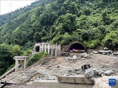 這是雅康高速四川甘孜藏族自治州康定至瀘定段日地1號隧道至2號隧道隧間橋垮塌現(xiàn)場(8月3日攝)。新華社發(fā)
