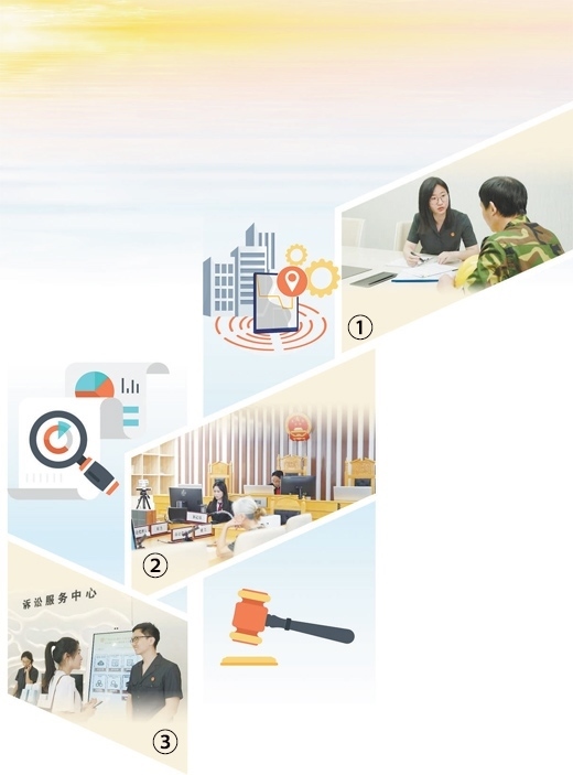 “政法委指導(dǎo)、法院搭臺、各部門唱戲,矛盾糾紛相當于進入一個層層化解的漏斗,最后少量疑難復(fù)雜案件由法院以裁判的方式解決?!睏钽懓选捌曳ㄉ浦蝒平臺”比喻成移動的“微法庭”,讓司法服務(wù)更廣覆蓋、更加便捷。