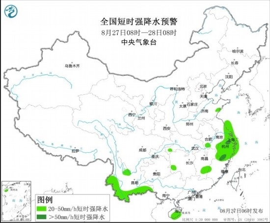 中新網(wǎng)8月27日電 據(jù)中央氣象臺網(wǎng)站消息,中央氣象臺8月27日6時發(fā)布強對流天氣藍色預(yù)警:預(yù)計8月27日8時至28日8時,內(nèi)蒙古地區(qū)東北部、江淮東部、江南東北部和南部、西南地區(qū)東南部等地的部分地區(qū)將有8級以上雷暴大風或冰雹天氣;黃淮東部、江漢西部、江淮西南部和東部、江南中東部、西南地區(qū)南部、華南南部等地的部分地區(qū)將有小時雨量大于20毫米的短時強降水天氣,其中,浙江北部和南部、福建北部等地的部分地區(qū)小時雨量大于50毫米,最大可達80毫米以上。