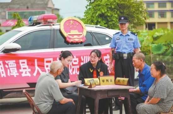 花石法庭與當(dāng)?shù)厮痉ㄋ?、派出所、律師事?wù)所聯(lián)合村委會就該案開展了分析研判,多次組織雙方當(dāng)事人協(xié)商,一直未達(dá)成協(xié)議。為避免糾紛久拖不決,同時考慮到雙方是幾十年的鄰居,法官決定將庭審“搬”至當(dāng)事人家門口。