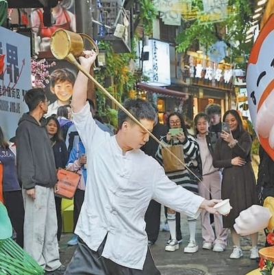 豐富文旅業(yè)態(tài)演員在進行非遺表演。磁器口古鎮(zhèn)管委會供圖