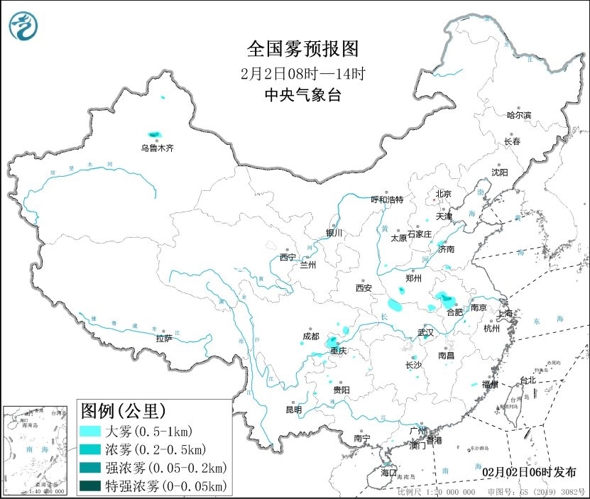 預計,2月2日早晨至上午,瓊州海峽部分海域、安徽西部、湖北北部、重慶西部等地將有能見度不足1公里的大霧,局地有能見度不足500米的濃霧。
