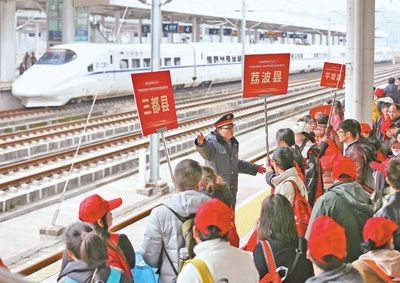 “廣州南站開辟了綠色通道,安排工作人員和志愿者在站臺、出站口、停車場等地提供咨詢指引、行李搬運(yùn)等服務(wù),讓返崗更順暢。”廣州南站值班站長謝海介紹。