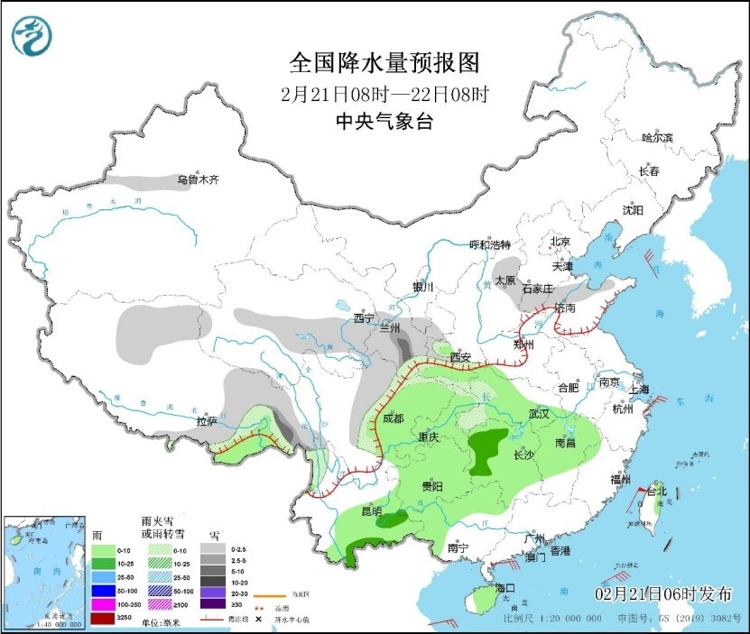 人民網(wǎng)北京2月21日電 (溫璐、高清揚(yáng))據(jù)中央氣象臺消息,昨日,降雨主要出現(xiàn)在江南地區(qū),其中湖南中南部、江西、安徽南部、浙江、福建西部和北部、廣西北部、臺灣島北部等地有中到大雨,局地暴雨。預(yù)計(jì)21日至25日,江南、華南、江漢及西南地區(qū)等地仍多陰雨天氣,北方大部地區(qū)天氣晴好,西北地區(qū)東南部、華北南部、東北地區(qū)東北部等地有弱降雪。