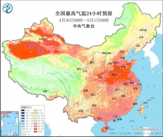 昨日,河北南部等地最高氣溫超過35℃。預(yù)計(jì)今天,華北、黃淮一帶氣溫仍較高,包括鄭州在內(nèi)的部分地區(qū)今天最高氣溫可達(dá)35℃。五一假期臨近,氣象專家提醒,假日前期全國(guó)大部地區(qū)降雨偏弱,氣溫偏高,公眾在外出游玩時(shí)注意防暑防曬。假日后期南方地區(qū)雨水增多,外出時(shí)需注意避雨和防御強(qiáng)對(duì)流天氣。