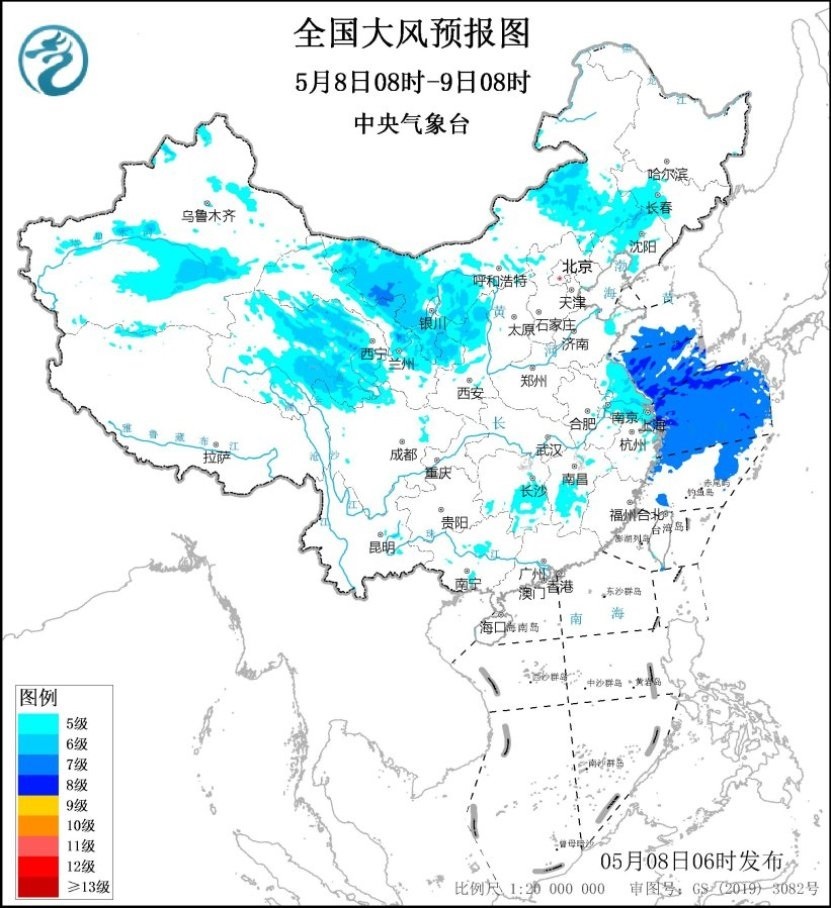 此外,受冷空氣影響,8日至9日,西北地區(qū)東部、內(nèi)蒙古、華北將先后有4~8℃降溫,上述部分地區(qū)有4~6級風,陣風7~10級,內(nèi)蒙古西部、新疆南疆等地部分地區(qū)伴有沙塵天氣。目前,大風藍色預警生效中。
