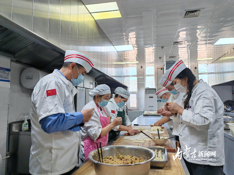 在孫磊的身后,來自內蒙古各地的同事們,操著不同的方言熱鬧忙碌地包著餃子。再過一會兒,就到午餐時間了。大家用忙碌和充實的工作,為春節(jié)堅守的乘務員們奉獻一個溫馨的春節(jié)。