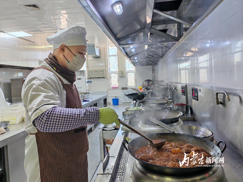 春節(jié)期間的桑根達來行車公寓后廚,廚師孫磊正在灶臺前忙碌著。面前一口碩大的鐵鍋內,醬色的四喜丸子在濃郁的湯汁里,散發(fā)著撲鼻的香氣。廚房升騰著陣陣煙火氣,蒸汽在玻璃窗上凝成水珠。灶臺上好幾口鐵鍋同時翻騰著——紅燒肉咕嘟冒泡,油燜大蝦亮紅誘人,燉牛肉飄來陣陣香氣,圓嘟嘟的餃子也即將下鍋。千家萬戶團圓之時,這個草原深處的特殊驛站里,工作人員正用精心制作的特色美食,為堅守崗位的鐵路人打造出別具溫情的團圓飯。
