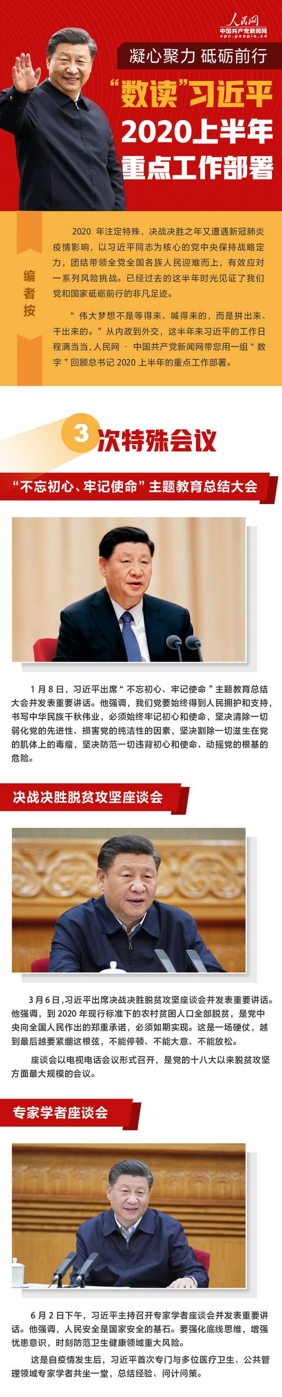 細數(shù)今年上半年,習近平夙夜在公,勤勉工作,不斷刷新“忙碌指數(shù)”:數(shù)十次出席重要會議部署各項工作,8次國內(nèi)考察,調(diào)研足跡遍及7省區(qū)市,3次出席國際重要會議并發(fā)表講話,20余次致信、回信海內(nèi)外人士,60次就疫情防控等話題與40余位外國政要和國際組織負責人通電話……人民網(wǎng)·中國共產(chǎn)黨新聞網(wǎng)推出系列圖解報道,帶您全方面回顧習近平的2020上半年。