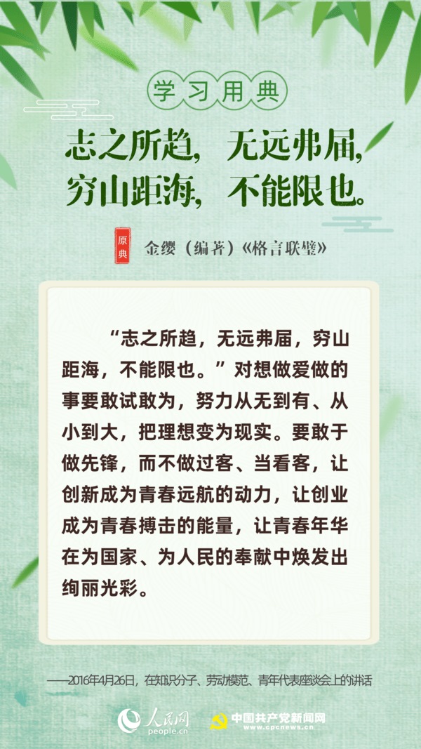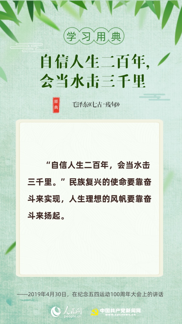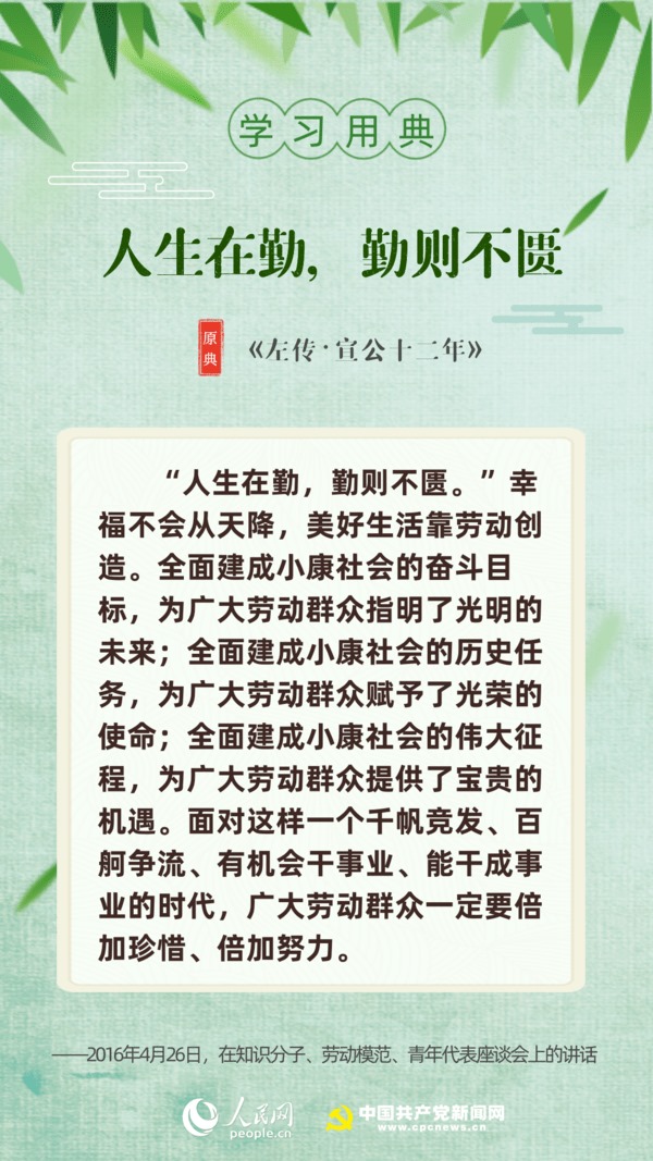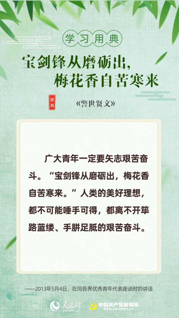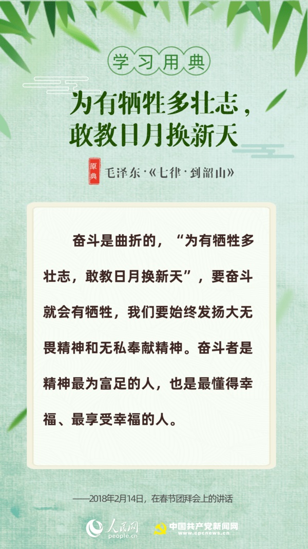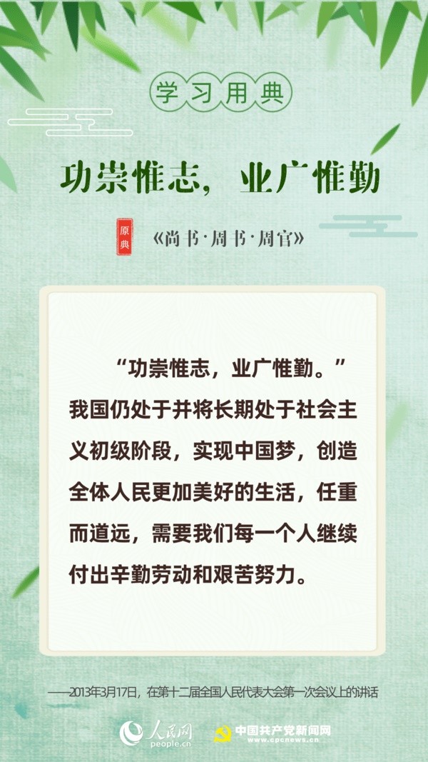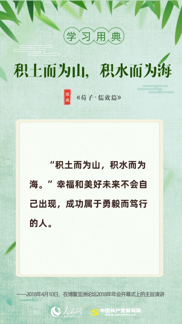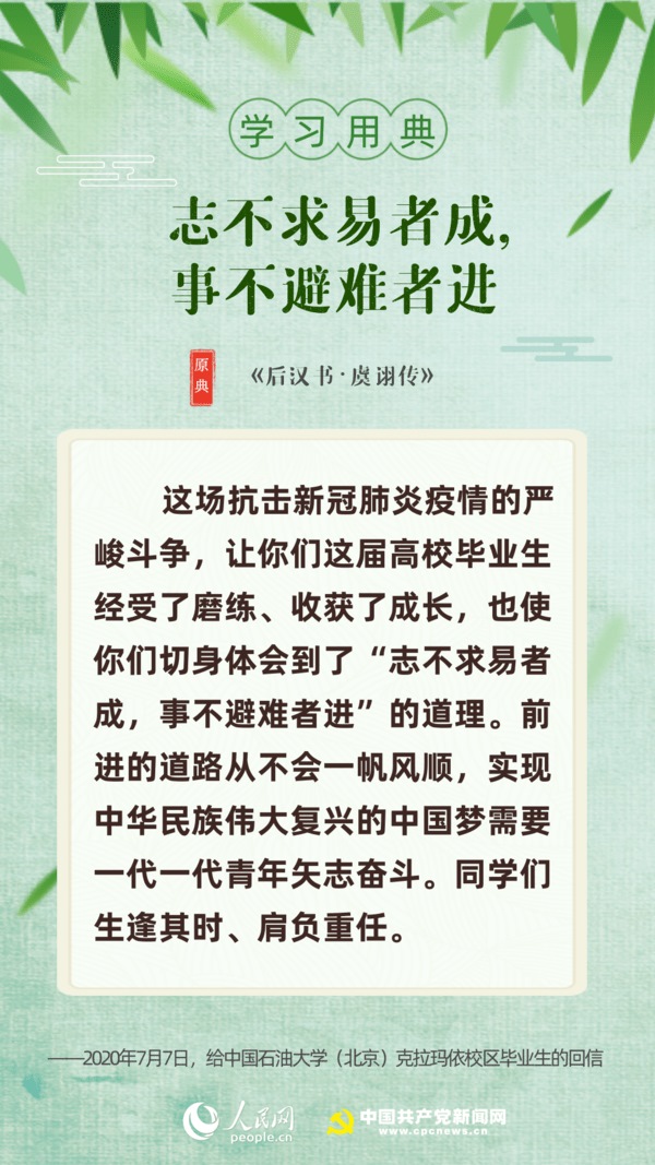 【編者按】“志不求易者成,事不避難者進(jìn)?!苯?,習(xí)近平總書記給中國石油大學(xué)(北京)克拉瑪依校區(qū)畢業(yè)生回信,對廣大高校畢業(yè)生提出殷切期望?!叭松谇?,勤則不匱”“積土而為山,積水而為?!薄陙恚?xí)近平多次引用詩句典故,激勵包含廣大青年在內(nèi)的全黨全國各族人民拼搏奮進(jìn)、埋頭苦干。正值“戰(zhàn)疫”“戰(zhàn)貧”關(guān)鍵時刻,人民網(wǎng)·中國共產(chǎn)黨新聞網(wǎng)與您一起回顧習(xí)近平講話中關(guān)于“奮斗”的10個名句。