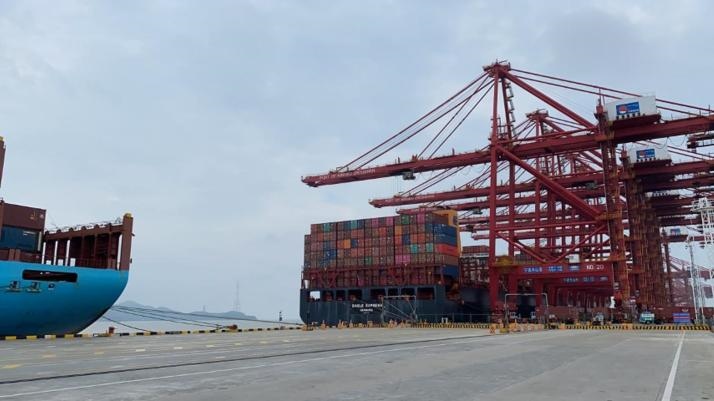 7月,寧波舟山港,一艘艘貨輪進出繁忙,行駛得又穩(wěn)又快。又穩(wěn)又快的還有中國對外開放的腳步。