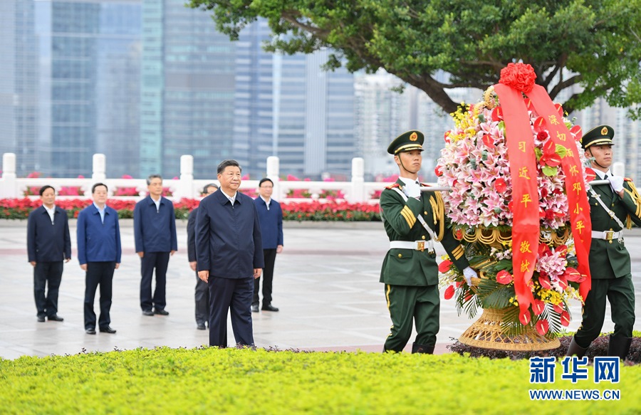 10月14日,深圳經(jīng)濟特區(qū)建立40周年慶祝大會在廣東省深圳市隆重舉行。中共中央總書記、國家主席、中央軍委主席習(xí)近平在會上發(fā)表重要講話。這是當(dāng)天下午,習(xí)近平來到蓮花山公園,向鄧小平同志銅像敬獻花籃。 新華社記者 李響 攝