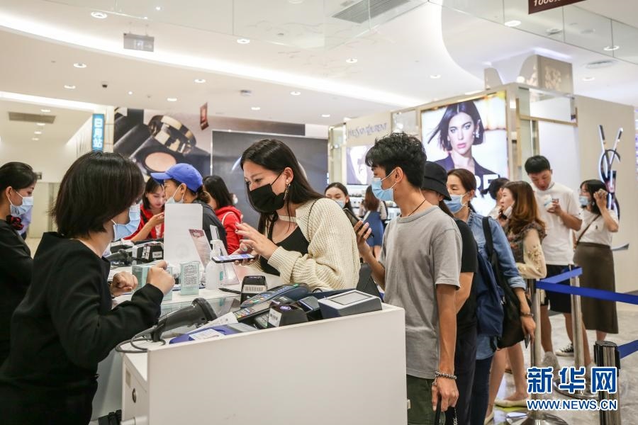 10月27日,消費(fèi)者在海南省海口市日月廣場(chǎng)免稅店選購(gòu)商品。新華社記者 張麗蕓 攝