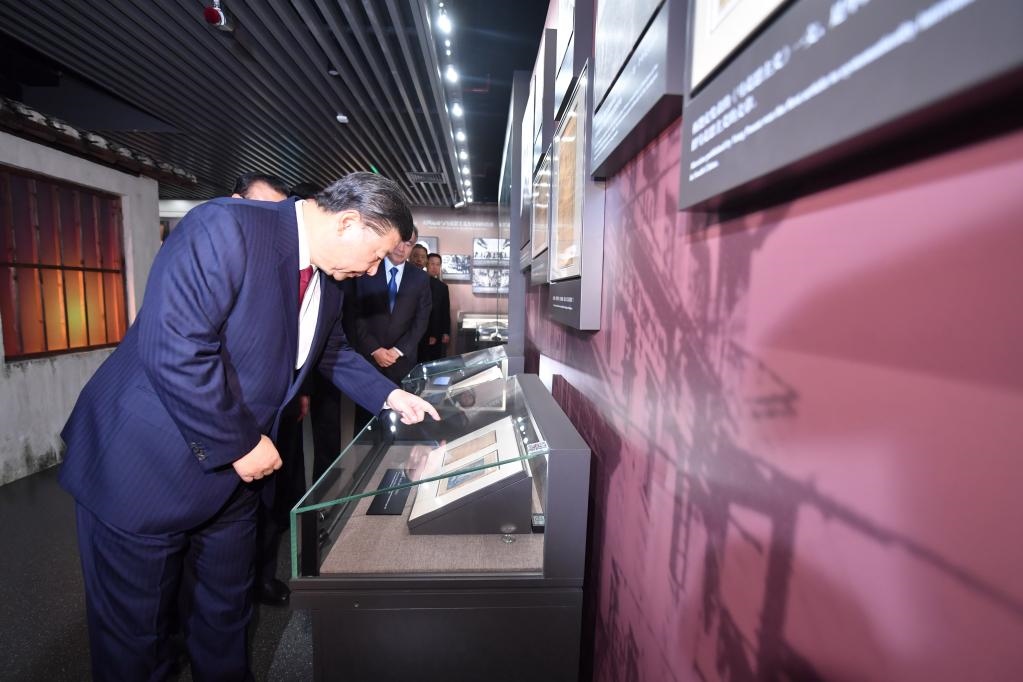 2017年10月31日,習(xí)近平等在上海中共一大會(huì)址紀(jì)念館參觀。(新華社記者李濤攝)