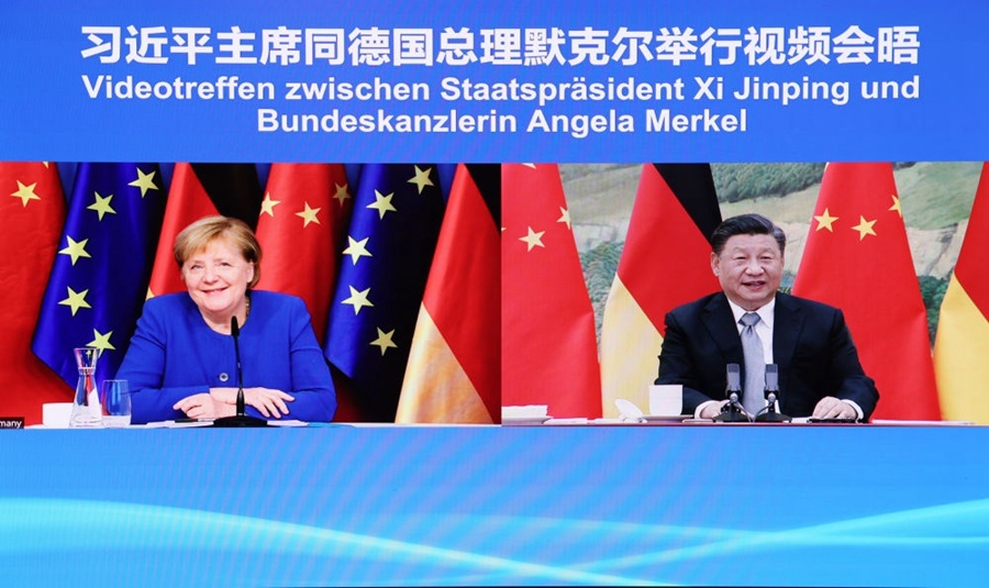 這是一次特殊的會(huì)晤。已擔(dān)任德國(guó)總理16年的默克爾,不久后將卸任。她原計(jì)劃再度訪華。由于疫情,兩位領(lǐng)導(dǎo)人商定,以視頻會(huì)晤的方式再度會(huì)面。