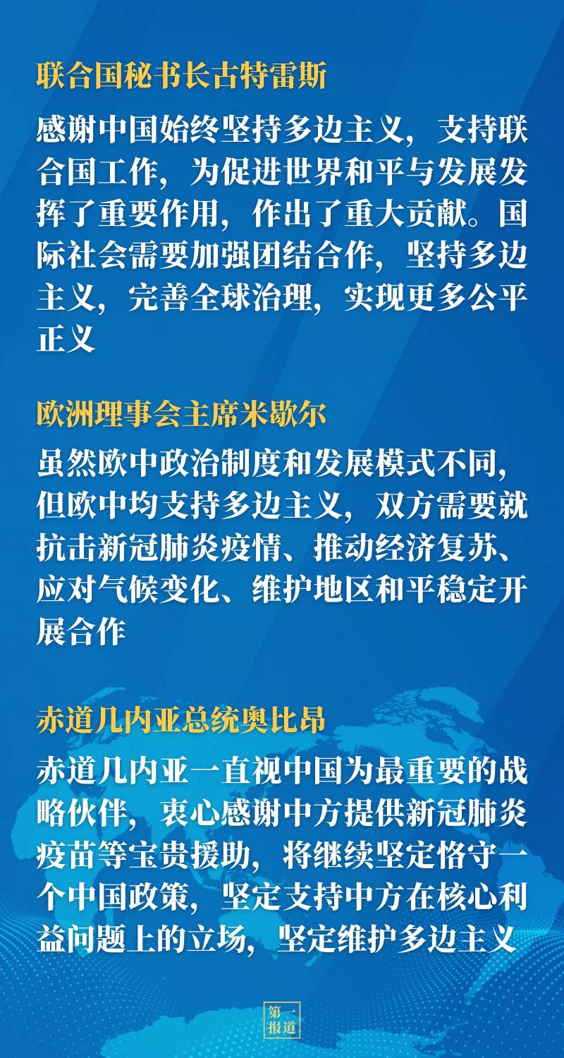 在同聯(lián)合國秘書長古特雷斯、歐洲理事會主席米歇爾、巴基斯坦總理伊姆蘭·汗、巴布亞新幾內(nèi)亞總理馬拉佩、赤道幾內(nèi)亞總統(tǒng)奧比昂等國際和地區(qū)組織以及國家領(lǐng)導(dǎo)人的交流中,習(xí)近平主席都分別同各方就堅(jiān)持真正的多邊主義深入交流,獲得積極反饋——