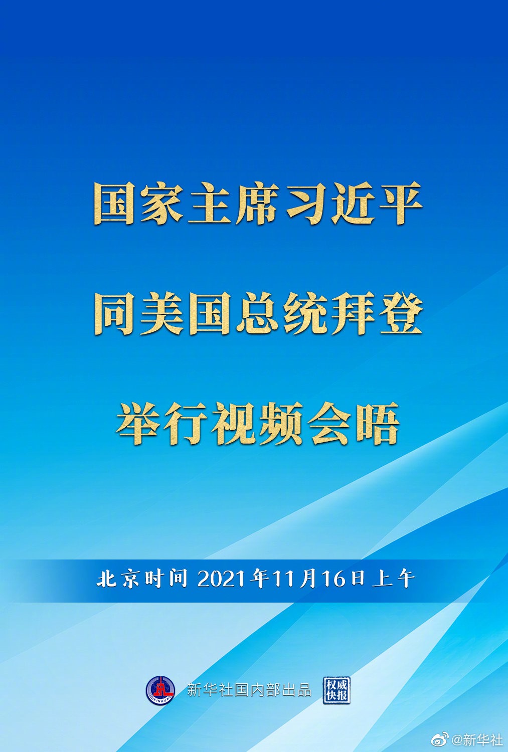 經(jīng)中美雙方商定,國(guó)家主席習(xí)近平于北京時(shí)間11月16日上午同美國(guó)總統(tǒng)拜登舉行視頻會(huì)晤,就中美關(guān)系和雙方共同關(guān)心的問(wèn)題交換意見(jiàn)。現(xiàn)在會(huì)晤已開(kāi)始舉行。