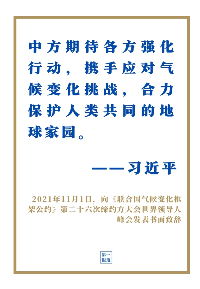 ——“應(yīng)對氣候變化等全球性挑戰(zhàn),多邊主義是良方?!?/strong>在《聯(lián)合國氣候變化框架公約》第二十六次締約方大會世界領(lǐng)導人峰會上,習近平主席強調(diào)“維護多邊共識”。