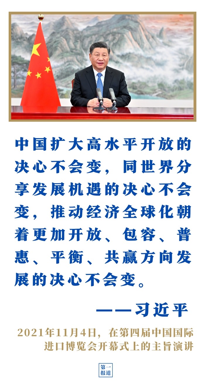 第四屆進博會上,習近平主席表示,中國愿同各國共建開放型世界經(jīng)濟,讓開放的春風溫暖世界;第三次“一帶一路”建設(shè)座談會上,習近平主席強調(diào)以高標準、可持續(xù)、惠民生為目標,繼續(xù)推動共建“一帶一路”高質(zhì)量發(fā)展。