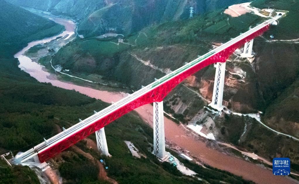 中老鐵路首發(fā)列車駛過中國(guó)云南省元江哈尼族彝族傣族自治縣境內(nèi)的元江雙線特大橋(12月3日攝,無人機(jī)照片)。新華社記者王冠森攝