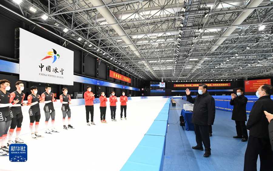 2022年1月4日,中共中央總書記、國家主席、中央軍委主席習(xí)近平在北京考察2022年冬奧會、冬殘奧會籌辦備賽工作。這是4日下午,習(xí)近平在二七廠冰雪項目訓(xùn)練基地速滑館,向參訓(xùn)運動員、教練員表示慰問。新華社記者謝環(huán)馳攝