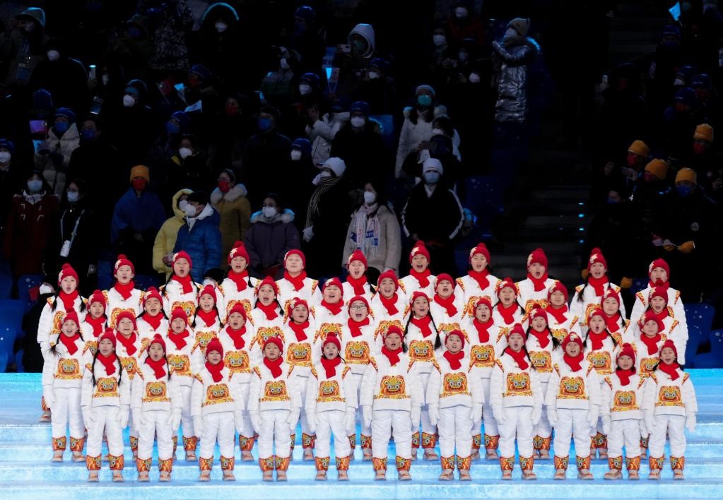 2月4日晚,第二十四屆冬季奧林匹克運(yùn)動(dòng)會(huì)開幕式在北京國家體育場舉行。圖為孩子們演唱奧林匹克會(huì)歌。新華社記者李安攝