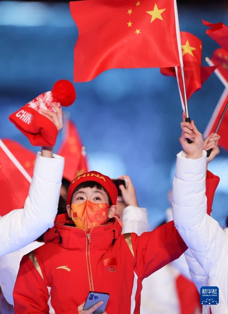 這是中國代表團成員在閉幕式上入場。