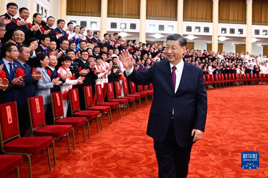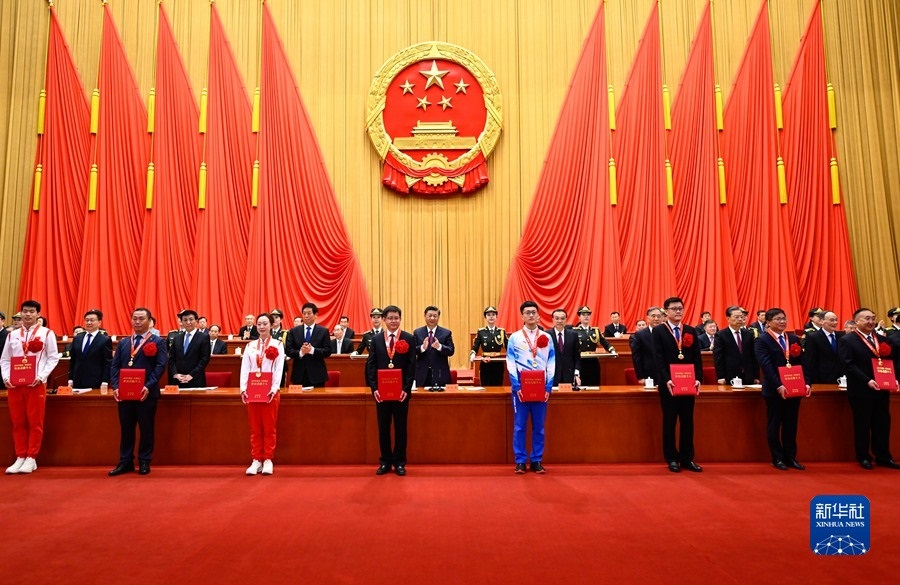 4月8日,北京冬奧會、冬殘奧會總結(jié)表彰大會在北京人民大會堂隆重舉行。習(xí)近平等為北京冬奧會、冬殘奧會突出貢獻(xiàn)個人和突出貢獻(xiàn)集體代表頒獎。新華社記者 翟健嵐 攝