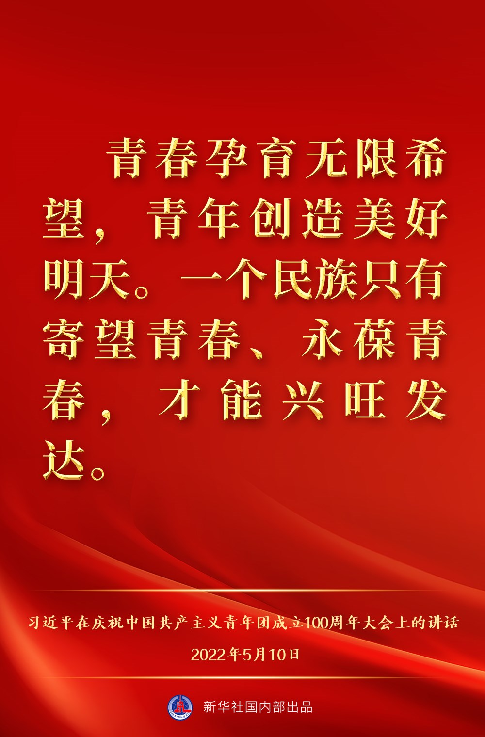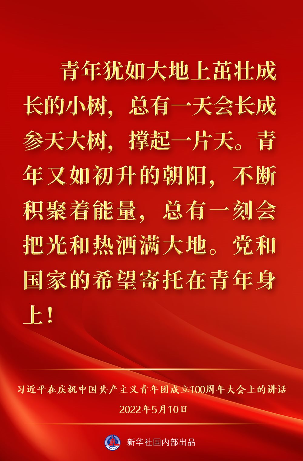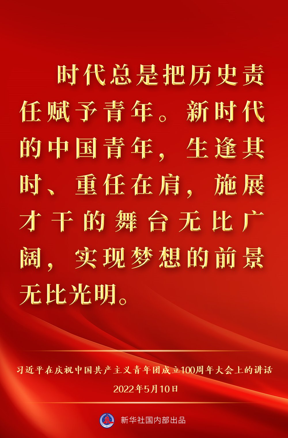 5月10日上午,中共中央總書記、國家主席、中央軍委主席習近平出席慶祝中國共產主義青年團成立100周年大會并發(fā)表重要講話,一起來看金句。