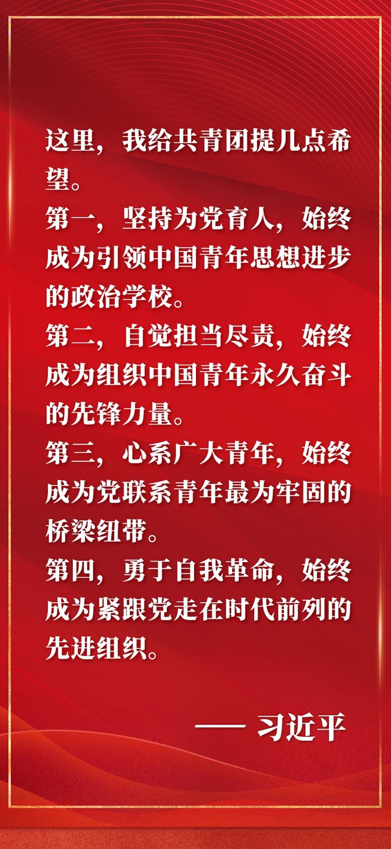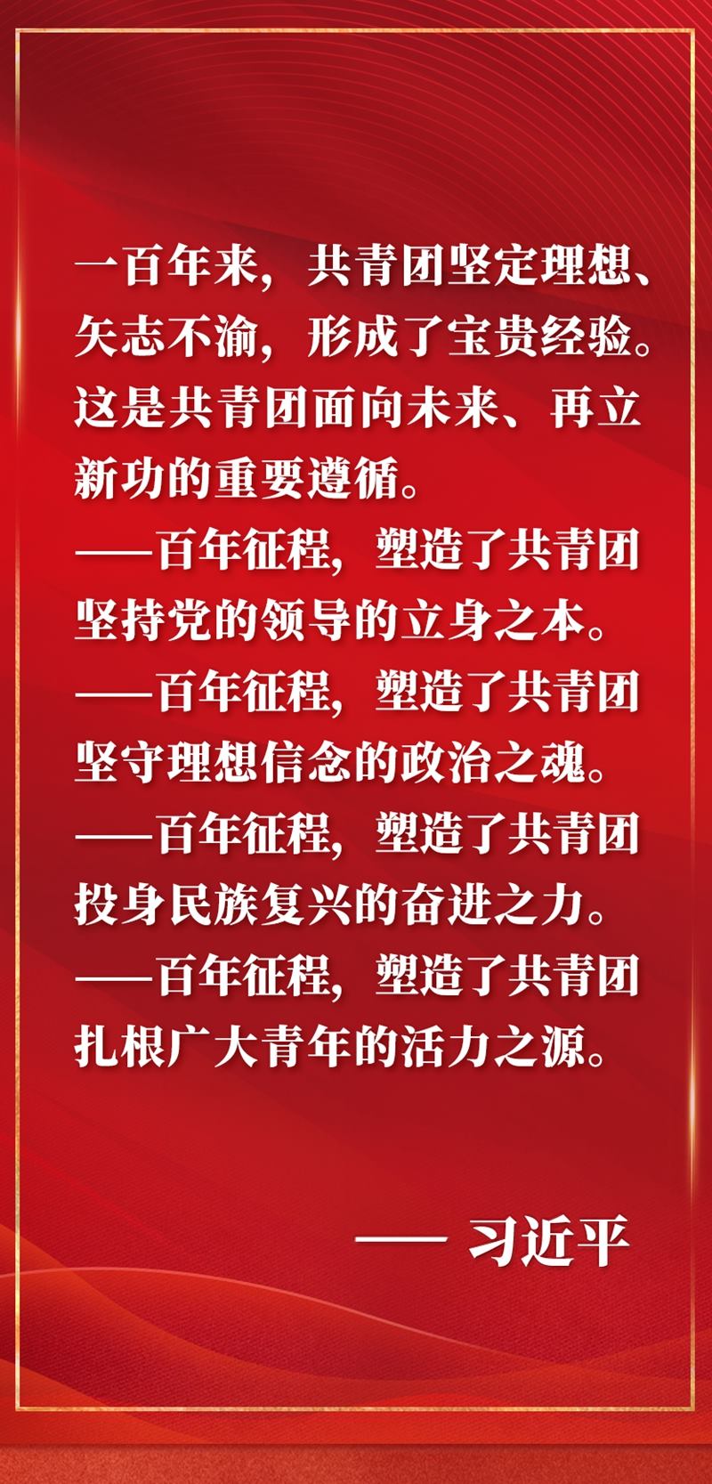 慶祝中國共產(chǎn)主義青年團(tuán)成立100周年大會10日上午在北京人民大會堂隆重舉行。中共中央總書記、國家主席、中央軍委主席習(xí)近平在會上發(fā)表重要講話,全面回顧百年來共青團(tuán)堅定不移聽黨話、跟黨走的奮斗歷程,深刻闡明共青團(tuán)和青年工作的寶貴經(jīng)驗(yàn),對當(dāng)代青年寄予殷切期望,對做好新時代共青團(tuán)工作提出明確要求。