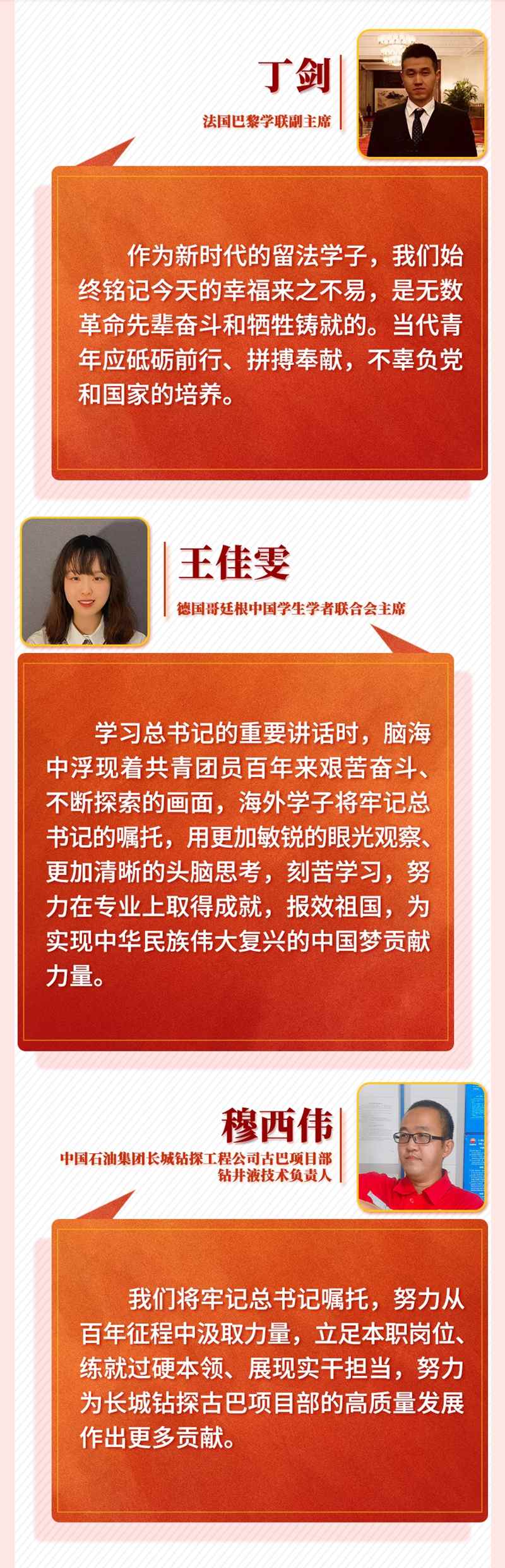 習(xí)近平總書記的重要講話令身在海外的中國青年備受鼓舞。他們一致表示,作為新時代的中國青年,一定牢記習(xí)近平總書記囑托,帶著夢想和使命,讓青春在海外煥發(fā)異彩,在實(shí)現(xiàn)中華民族偉大復(fù)興中國夢的新征程上奮勇前進(jìn),用青春的智慧和汗水打拼出一個更加美好的中國。