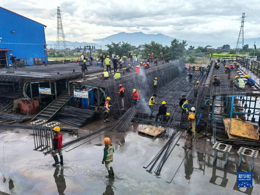 工人在印度尼西亞雅萬高鐵4號梁場作業(yè)(2022年5月1日攝)。新華社發(fā)(王增堃攝)