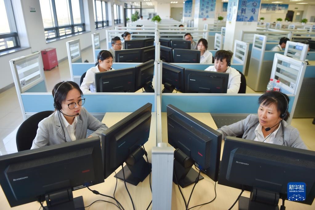 在位于北京亦莊的12345市民熱線話務(wù)大廳,工作人員接聽(tīng)熱線電話(2019年11月13日攝)。新華社記者 彭子洋 攝