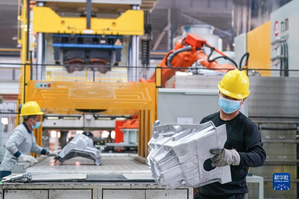 11月7日,在安徽省馬鞍山市含山縣輝晗精密機械有限公司,工人在壓鑄生產(chǎn)線上工作。新華社記者 劉軍喜 攝
