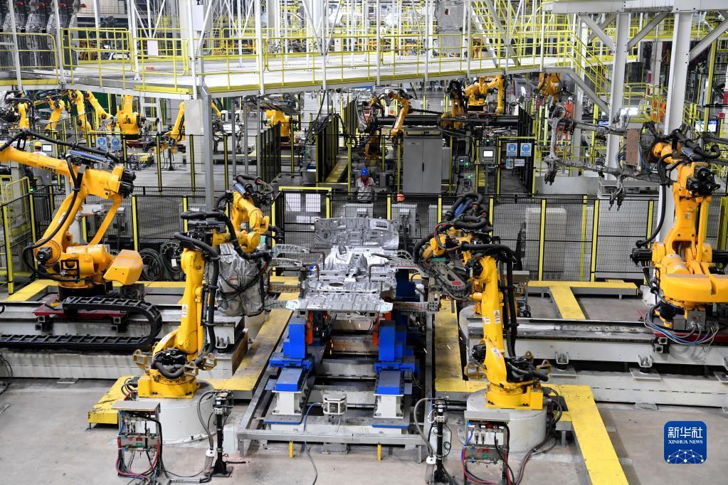 這是位于安徽省蕪湖市的奇瑞汽車智能網(wǎng)聯(lián)超級一工廠生產(chǎn)車間(11月9日攝)。新華社記者 劉軍喜 攝