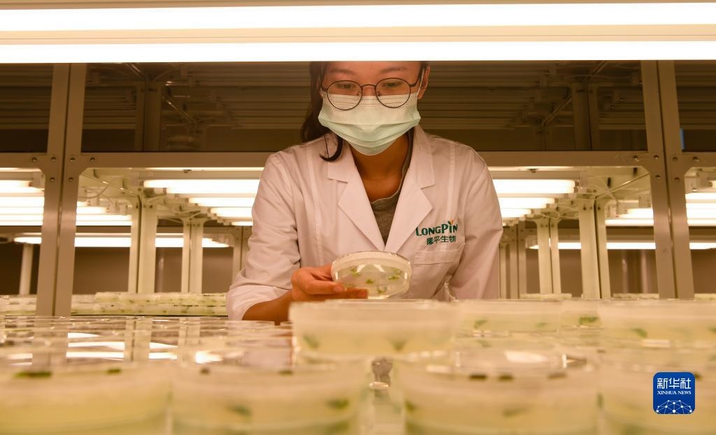 在海南省三亞市崖州灣科技城的崖州灣種子實(shí)驗(yàn)室,隆平生物技術(shù)公司科研人員在開(kāi)展科研工作(2021年11月25日攝)。新華社記者 楊冠宇 攝